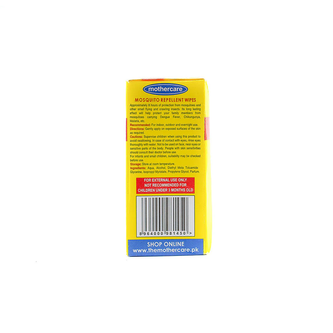 For many years, families across Pakistan have trusted Mothercare for safe and high-quality products. We bring that same promise of care and reliability to our hygiene range, including these mosquito repellent wipes. Choosing Mothercare means choosing a brand that always puts your family's well-being first.